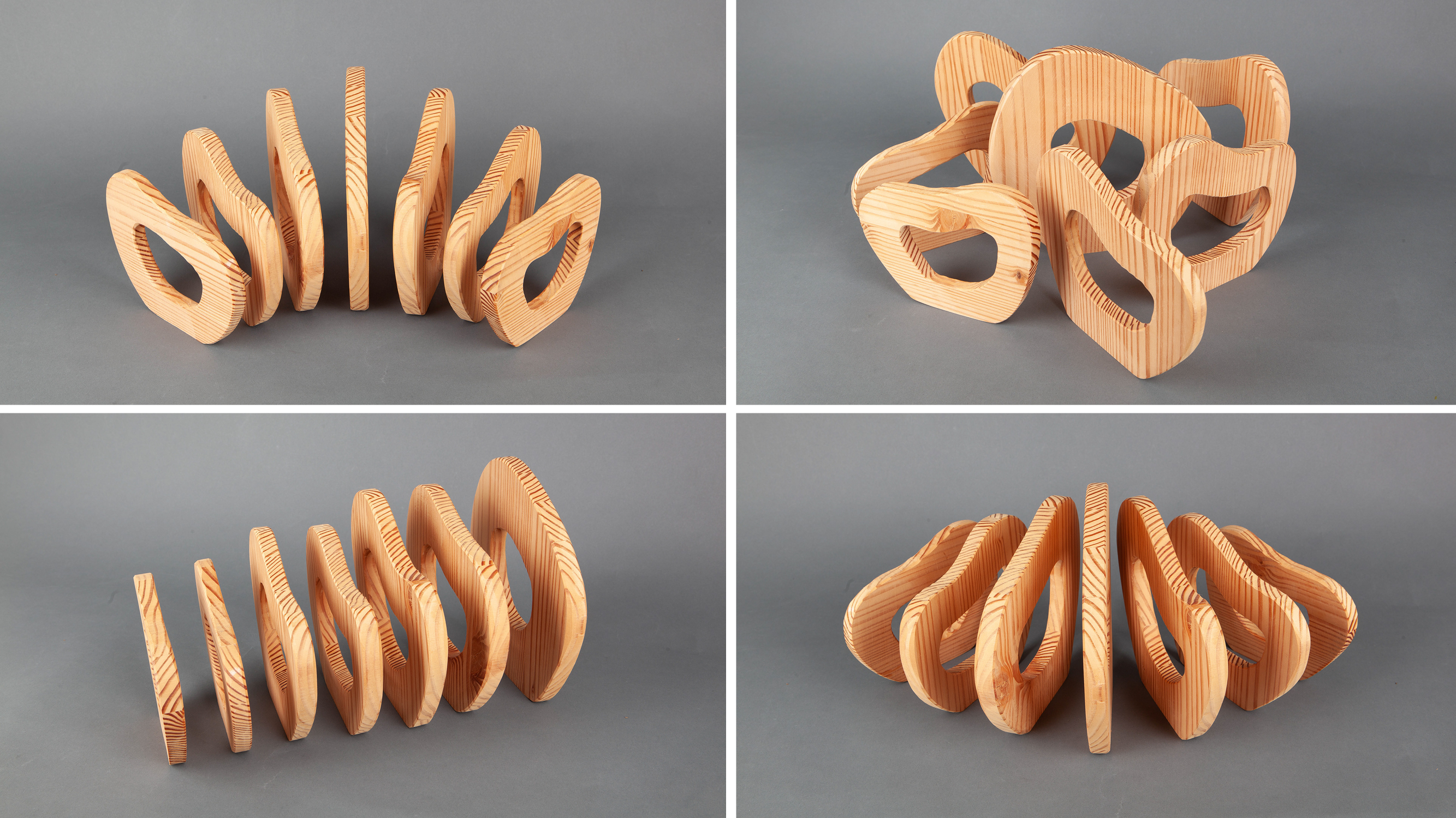 A flexible sculpture designed to be assembled in a variety of ways. Personal work.